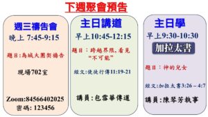 主內平安!  觀塘堂本周日主日崇拜的安排如下: