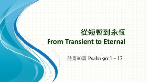 1 主啊,你世世代代作我們的居所。2 諸山未曾生出,地與世界你未曾造成,從亙古到永遠,你是神!3 你使人歸於塵土,說:「你們世人要歸回。」4 在你看來,千年如已過的昨日,又如夜間的一更。5 你叫他們如水沖去,他們如睡一覺。早晨,他們如生長的草,6 早晨發芽生長,晚上割下枯乾。7 我們因你的怒氣而消滅,因你的忿怒而驚惶。8 你將我們的罪孽擺在你面前,將我們的隱惡擺在你面光之中。9 我們經過的日子都在你震怒之下,我們度盡的年歲好像一聲歎息。10 我們一生的年日是七十歲,若是強壯可到八十歲;但其中所矜誇的不過是勞苦愁煩,轉眼成空,我們便如飛而去。11 誰曉得你怒氣的權勢?誰按着你該受的敬畏曉得你的忿怒呢?12 求你指教我們怎樣數算自己的日子,好叫我們得着智慧的心。13 耶和華啊,我們要等到幾時呢?求你轉回,為你的僕人後悔。14 求你使我們早早飽得你的慈愛,好叫我們一生一世歡呼喜樂。15 求你照着你使我們受苦的日子